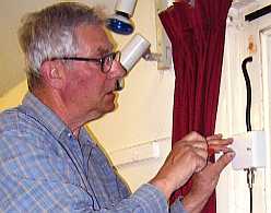 The picture on the left shows Dave Mason G3ZPR installing the box in which the feeder terminates in the main meeting room.