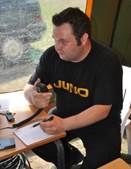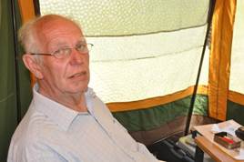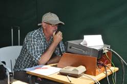 Alan Stepney G8BLW is seen on the right having a quick break between contacts.