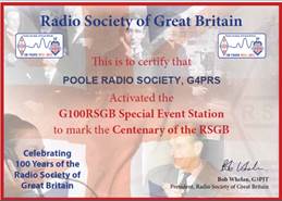 Poole Radio Society activated a special station G100RSGB in April, as the callsign toured the country.