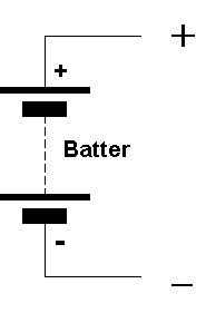 A cell is a small battery. It normally has a potential difference of about 1.5 Volts. Notice that it has two terminals, one has a + (positive), and the other a – (negative). |